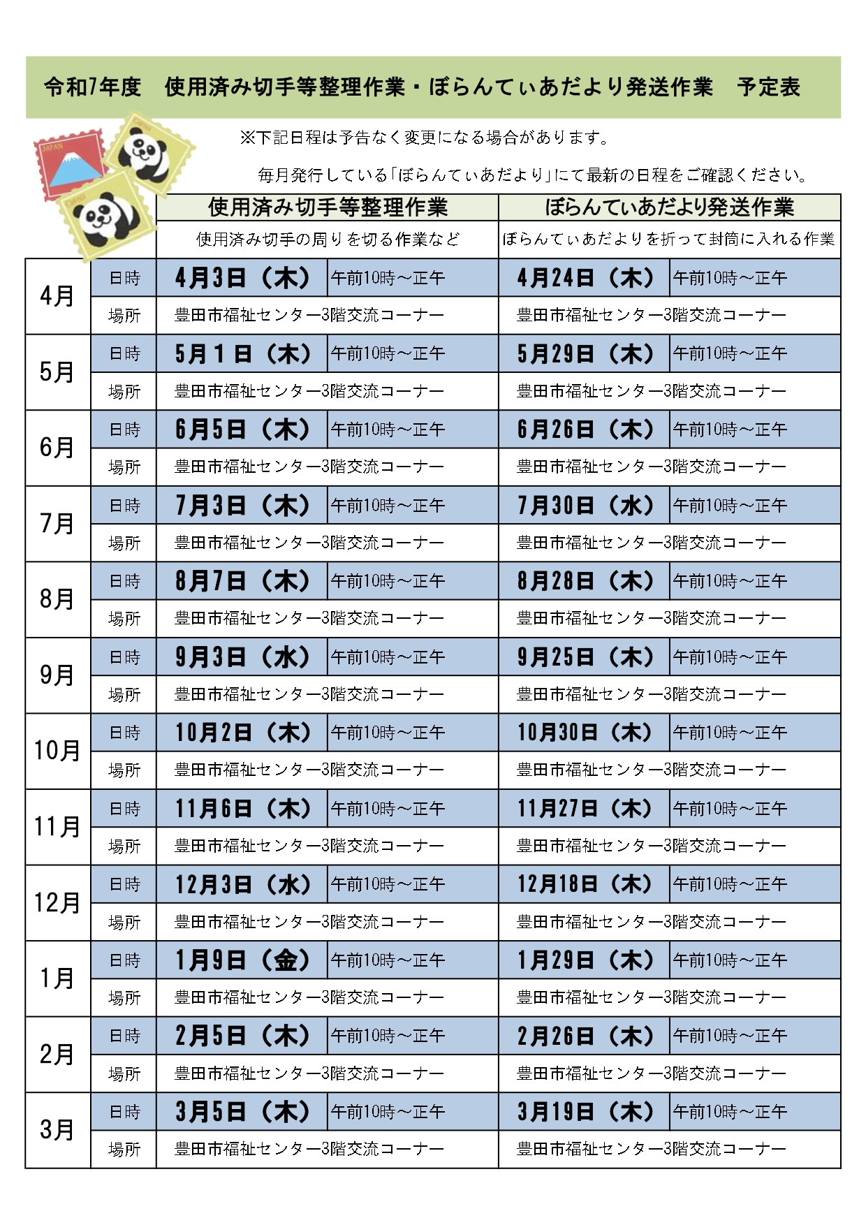 R7年度使用済み切手作業・ぼらんてぃあだより発送作業日程表_page-0001